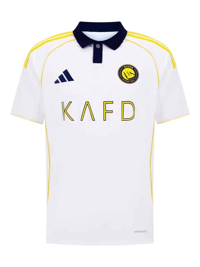 Asimismo, el calce regular se adapta de manera natural al cuerpo, permitiendo movilidad sin restricciones. Sin embargo, mantiene una estructura resistente que asegura durabilidad y retención de color incluso después de múltiples lavados. Finalmente, el escudo de Al Nassr aparece bordado con acabado premium, reforzando su carácter original dentro de la colección 2025/26.