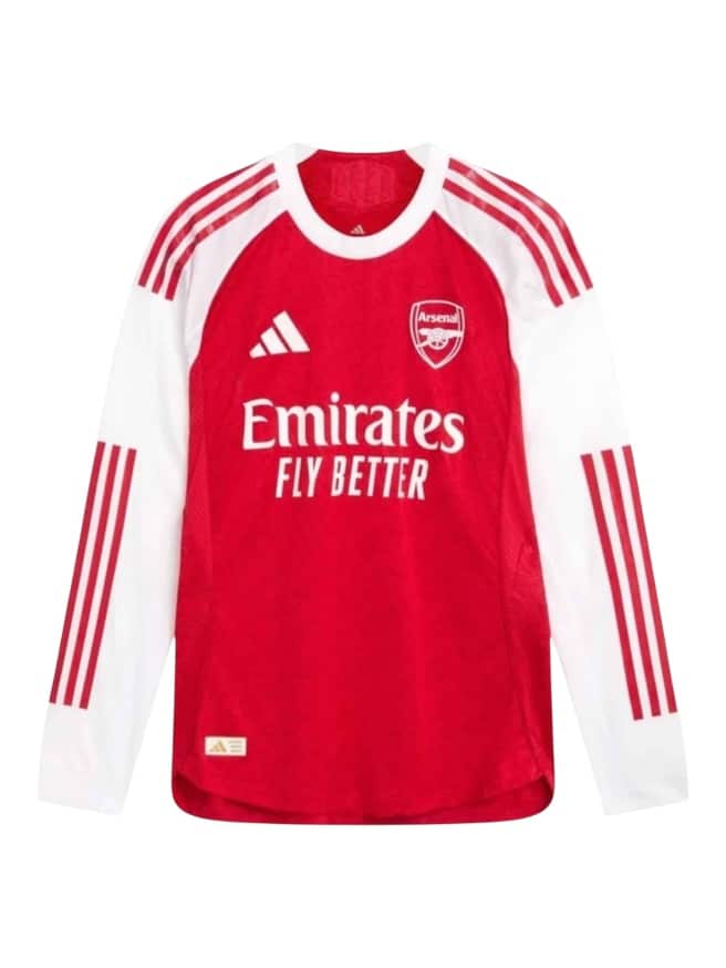 Camiseta Arsenal Titular 2025/26 Adidas Versión Partido Manga Larga con tecnología HEAT.RDY, diseño clásico y rendimiento profesional.
