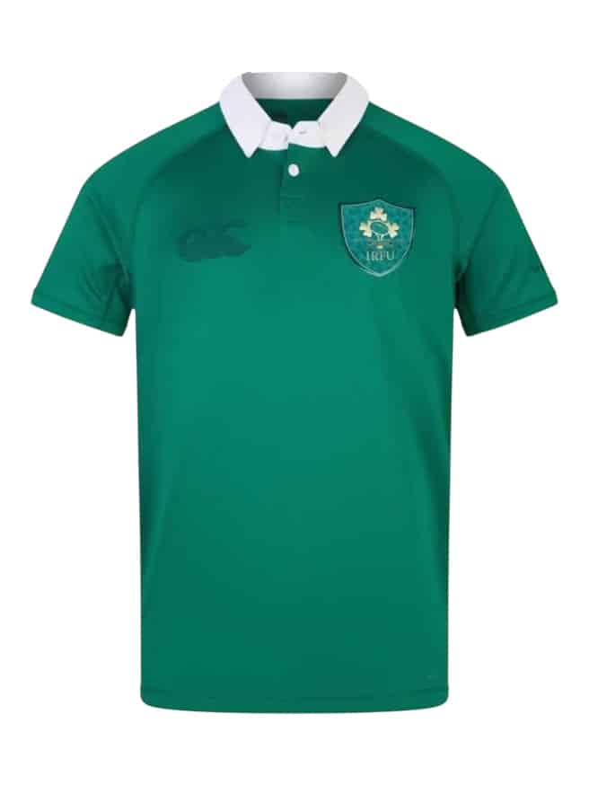 La Camiseta Irlanda 150 Aniversario Rugby Canterbury celebra la historia del equipo con diseño conmemorativo y tecnología VapoDri. Ideal para hinchas que buscan tradición, estilo y rendimiento.