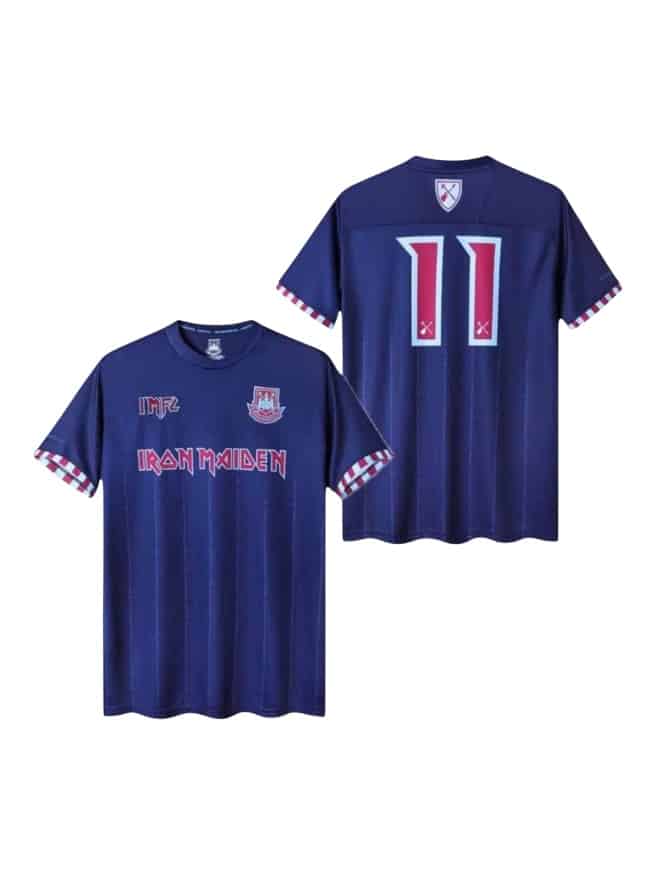 Camiseta Iron Maiden x West Ham United Visitante diseñada como colaboración, combinando estilo futbolero y esencia musical para uso diario.