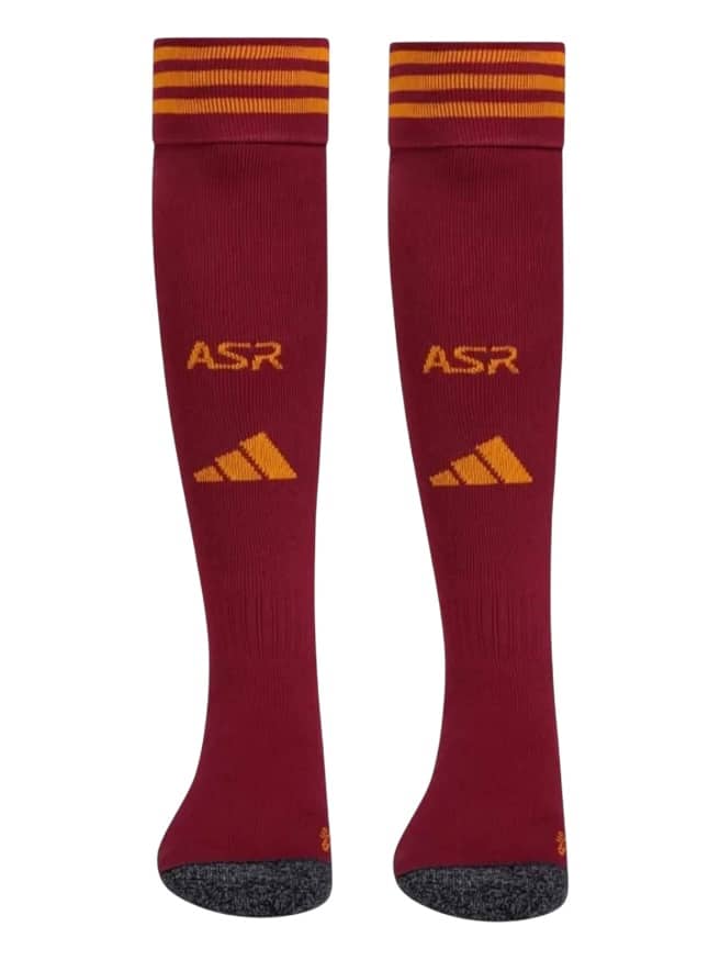 Medias AS Roma Titular 2025/26 Adidas diseñadas para brindar soporte, ajuste cómodo y transpirabilidad durante entrenamientos y partidos.